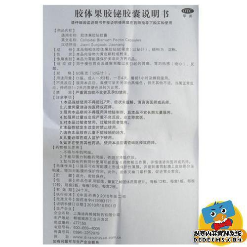 英文名称:ColloidalBismuthPectinCapsules